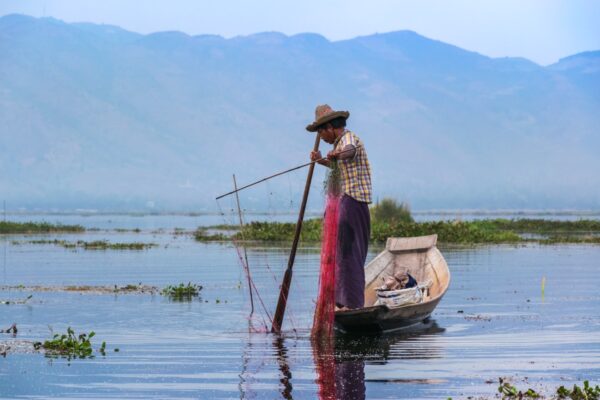 Aujourd’hui, dans ce billet, je vais m’attarder sur la pêche sur ce lac. Pêcher sur le lac Inle est un véritable art ! Les pêcheurs du lac Inle contribuent à la beauté du lac !