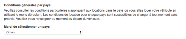 Allons voir les conditions par pays. Liste déroulante, choix Oman.
