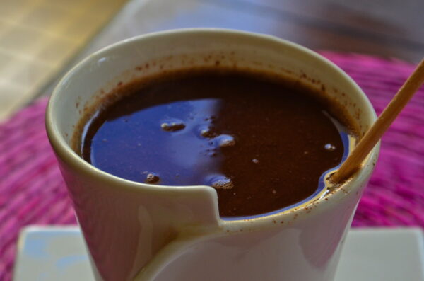 Premier chocolat chaud à goûter, le chocolat chaud traditionnel maya, à base d’eau et non de lait et surtout avec des épices dont du piment. C’est particulier et pour être honnête c’est à tester mais je n’ai pas forcément apprécié!