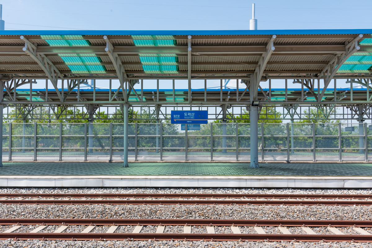 La station de Dorasan est une gare construite pour accueillir des trains faisant des trajets entre les 2 nations. La frontière étant totalement fermée pour le moment, elle n’est pas du tout utilisée. Du moins pas pour relier les 2 pays. Bien que proche de la zone de démarcation, elle se situe en dehors de la zone coréenne démilitarisée. Plutôt étonnant de voir cette gare moderne, absolument vide …