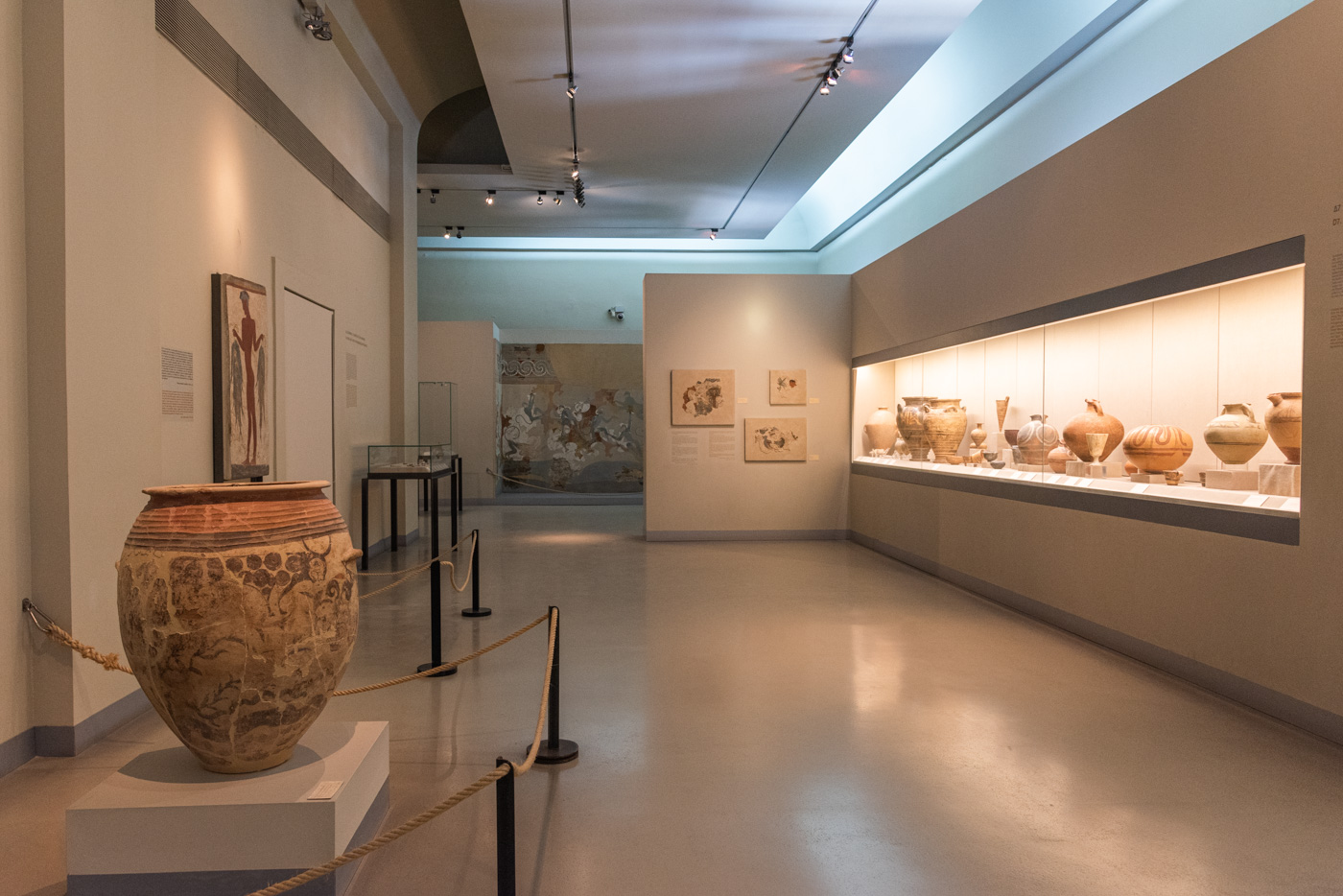 L’île de Santorin offre un site archéologique de la civilisation minoenne, le site d’Akrotiri. Ce site est visitable et permet de découvrir une ville de l’époque minoenne. En effet, la ville d’Akrotiri a été enfouie par l’éruption volcanique comme l’a été Pompéi.