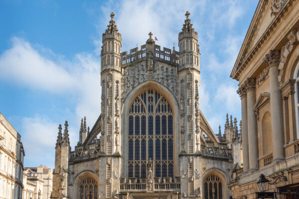 L’abbaye se situe sur la place où l’on trouve l’entrée des bains romains. Son nom complet est abbaye Saint-Pierre de Bath. Fondée en 675 sous le règne du roi Osric, l’abbaye a été modifiée à plusieurs reprises au cours de l’histoire : pour l’agrandir ou pour la restaurer. L’édifice religieux que l’on peut voir à l’heure actuelle date principalement de 1499. En effet, l’abbaye était en ruine à cette période et a presque intégralement été reconstruite.